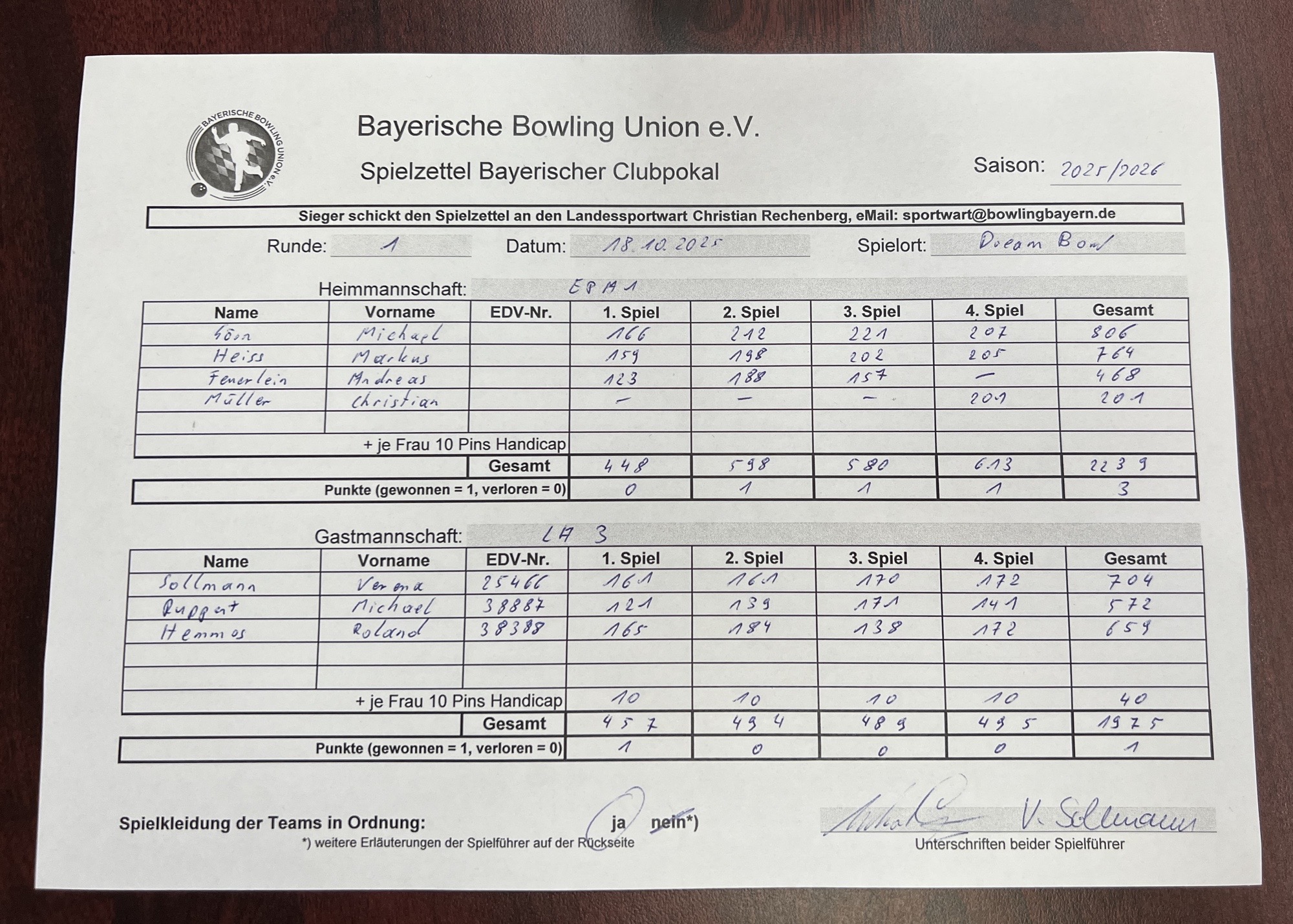 Mit 1975 : 2239 Pins und 1 : 3 Punkten ging die Partie verloren – aber vielleicht reicht es ja, um als Lucky Loser noch die nächste Runde zu erreichen.